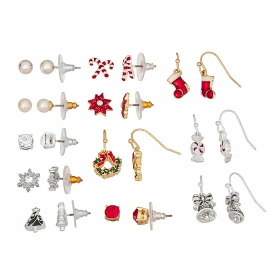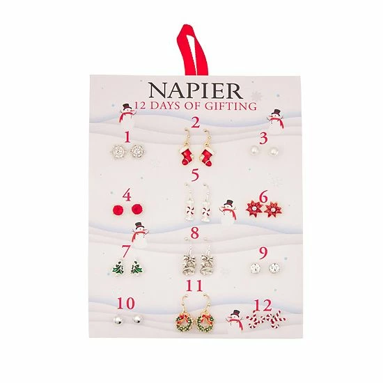 Add a bit of Holiday cheer with this Napier 12 Pack Christmas Stud Earrings.