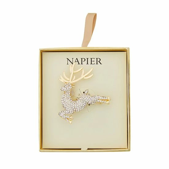 Accessorize in style with this Napier Box Elevated Crystal Reindeer Pin.