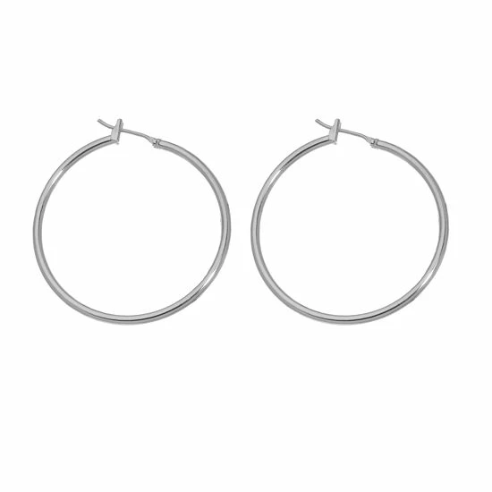Simply sophisticated. These beautiful earrings are perfect for everyday wear. Featuring a lightweight, tubular hoop design. With a metallic finish for a classic look. And snap-bar backings provide a stay-in-place fit. Essential earrings to complement all your outfits.