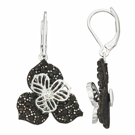 Finish off your outfit with eye-catching style in these silver tone and black crystal flower drop earrings from Napier.