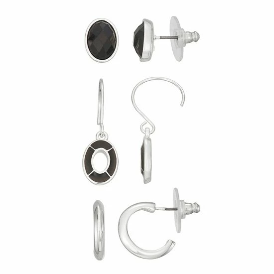 Give your jewelry collection a dramatic refresh with this 3-pack of silver tone and black earrings from Napier.