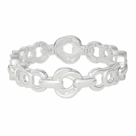 Accent your look with this silver tone knot link stretch bracelet from Napier, a lovely accessory you’ll reach for again and again.