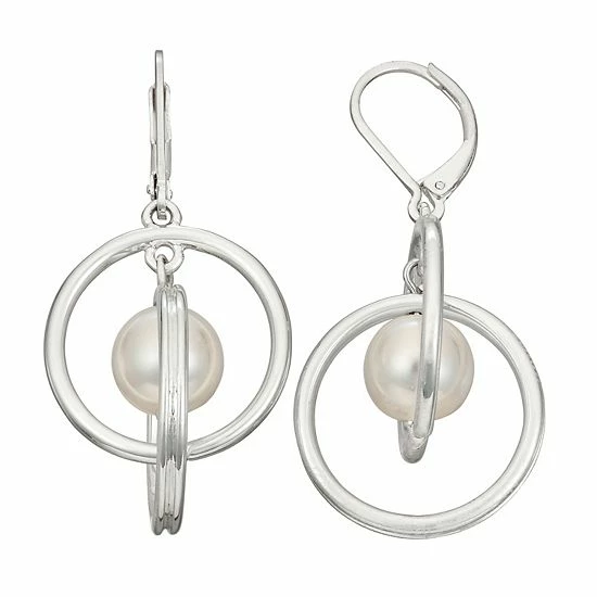 Turn heads in these eye-catching simulated pearl-accented silver tone orbital drop earrings from Napier.