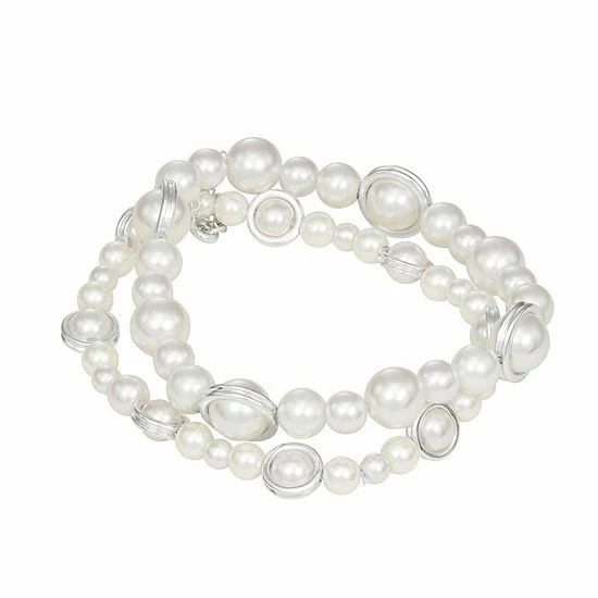 This pair of simulated pearl stretch bracelets from Napier are the perfect way to finish off any ensemble with a touch of class.